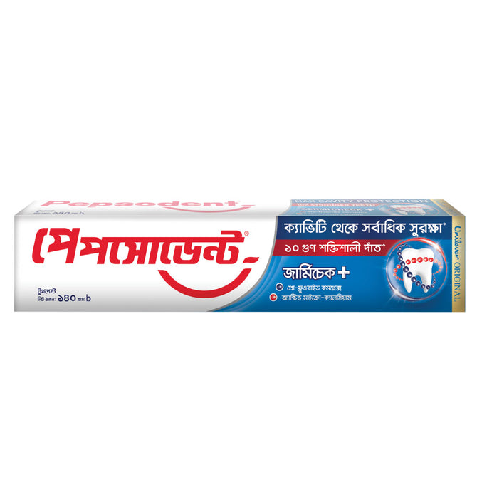 For strong, white teeth, get the Germi Check Toothpaste from Pepsodent. The superior germ attack power helps fight cavity-causing germs even hours after Brushing and the advanced formula gives you complete oral care solution. Formulated with fluoride and triclosan, this toothpaste ensures that you have a long-lasting fresh breath. It reduces stains and food remains, giving you plaque-free and germ-free teeth. Along with maintaining your teeth's health, this toothpaste prevents your gums from damage too. The perfect oral care solution for your family. Start Shopping Now!