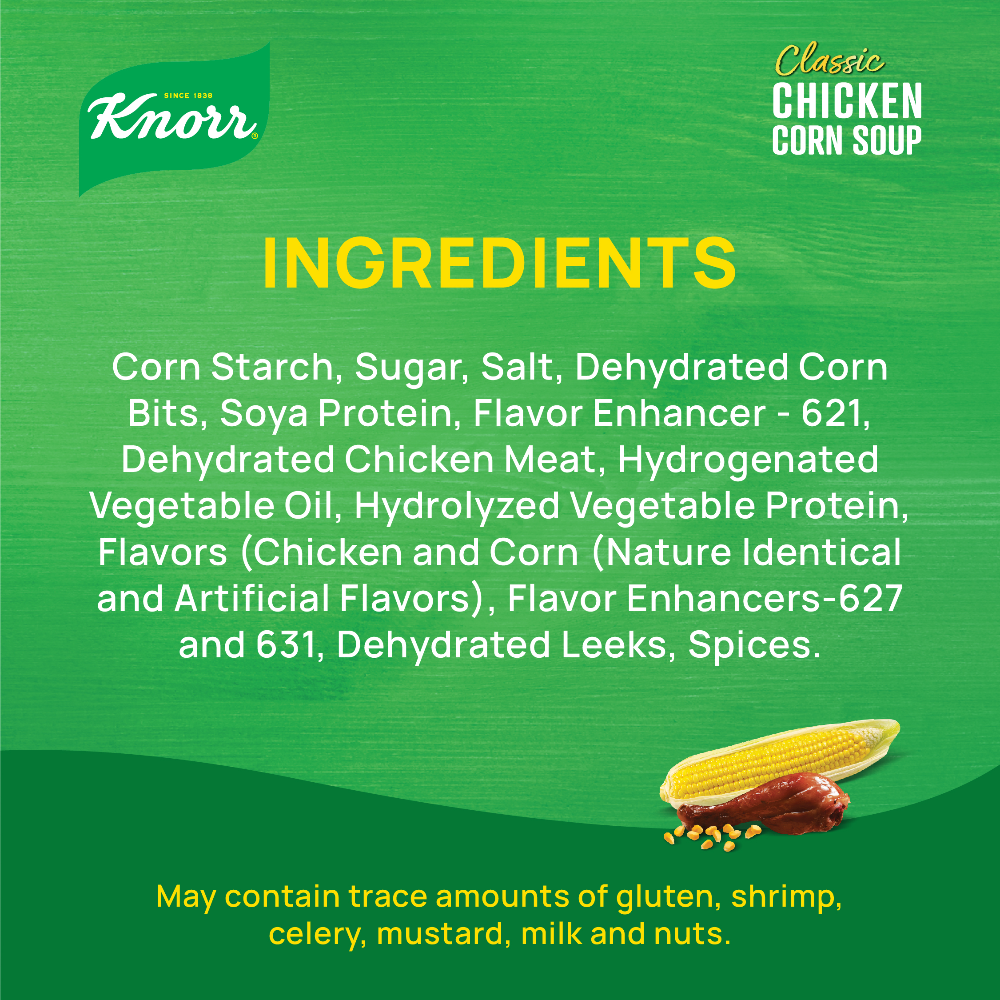 With its sweet, savory and subtle flavors, Knorr Classic Chicken Corn soup is the perfect way to get children to eat. The subtle flavors of Classic Corn Chicken can sometimes be jazzed up with a hint of spice to suit your palate.With such great taste and health benefits family time will become even more exciting with Knorr Soups!
