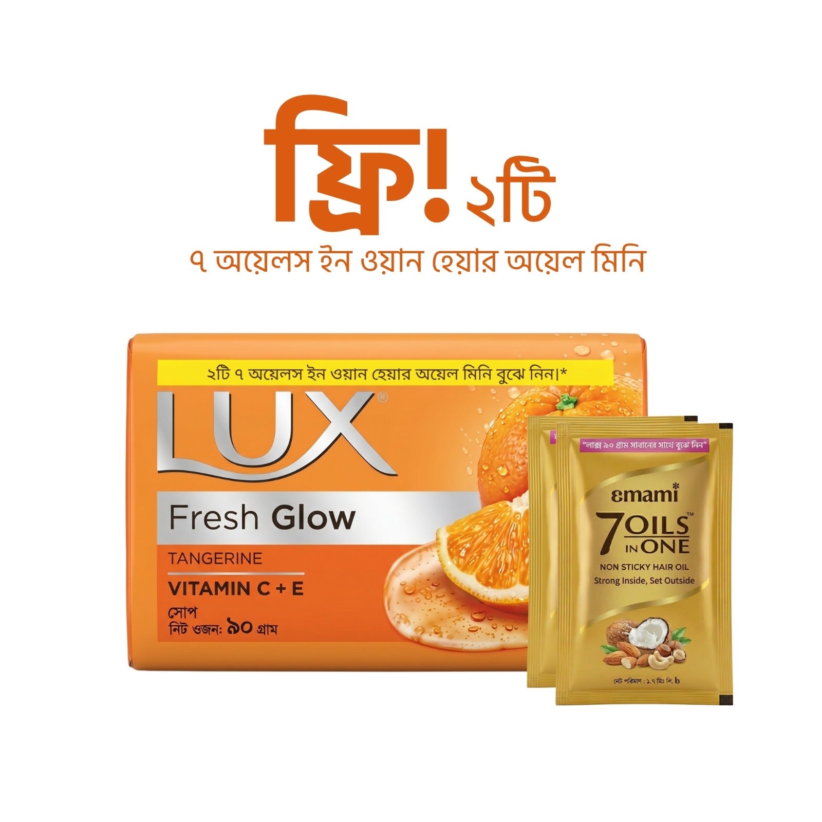 Lux Soap Bar Fresh Glow Tangerine & Vitamin C + E 90g (Free 2pcs Hair Oil Mini Pack)