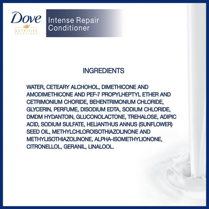 Dove Intense Repair Conditioner repairs the signs of damage to the hair surface and, with continued use, penetrates the hair strands to nourish, making hair stronger against breakage, for beautiful and visibly healthier results with every wash.