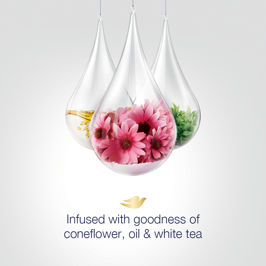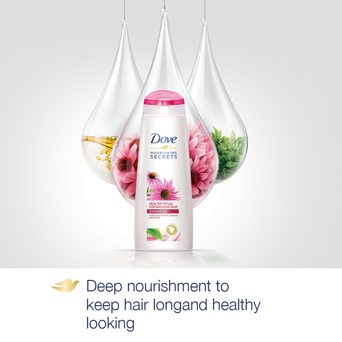 Dove borrowed this healthy ritual and created the new Healthy Ritual for Growing long Hair. Combined with the care of Dove, this shampoo can protect hair against daily damage instances like brushing, combing and, tangle-teasing. Our formula reduces hair breakage, hair fall, enabling it to grow beautifully long. The extracts of coneflower and white tea along with coconut oil, indulge your senses with fresh flowery notes while leaving your hair healthy looking and long.