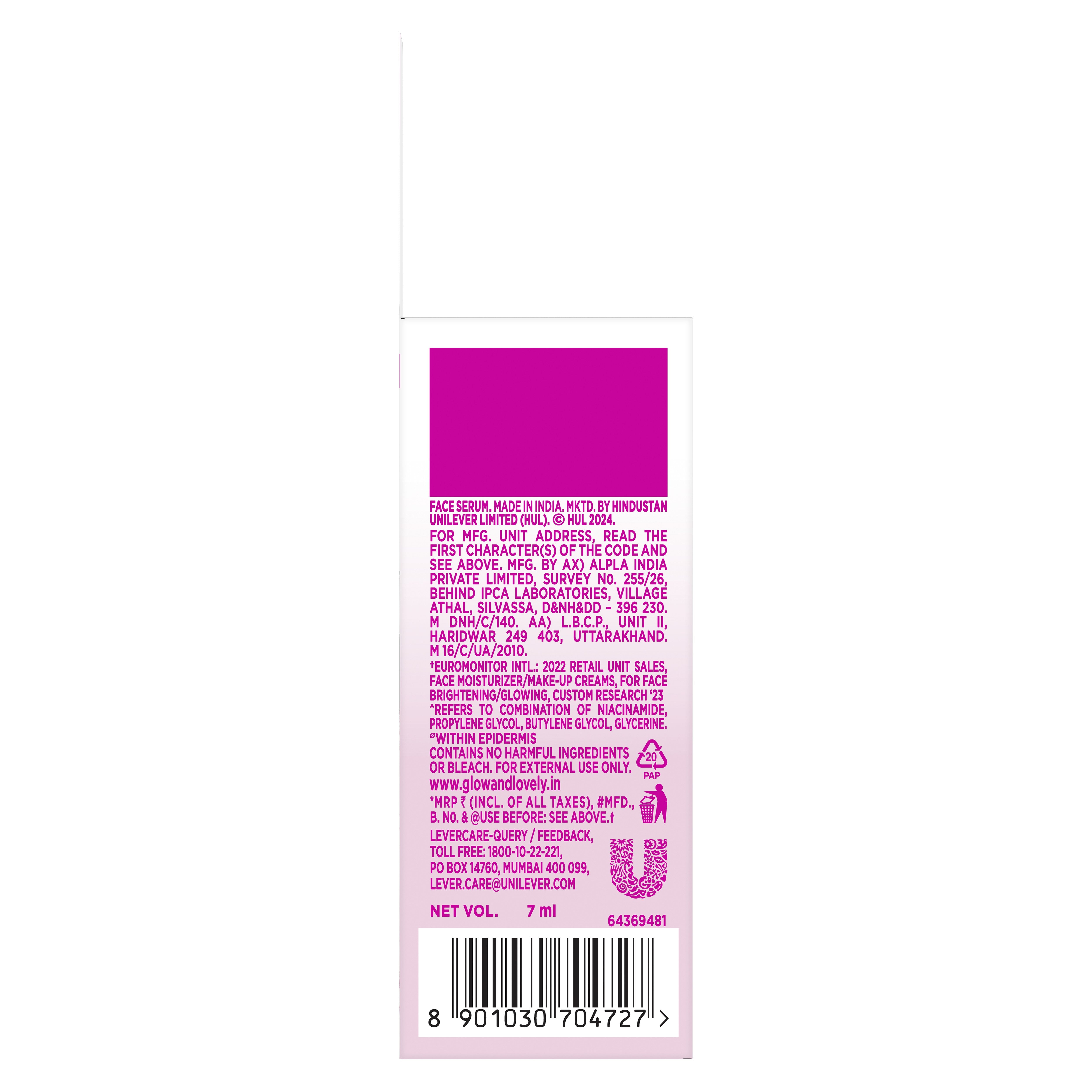 Glow & Lovely advanced face serum with 10X niacinamide complex for instant brighteness and hydration. Super light, non-sticky, fast absorbing formula internationally endorsed by skin health alliance. It gives ultra bright skin in just 3 drops.